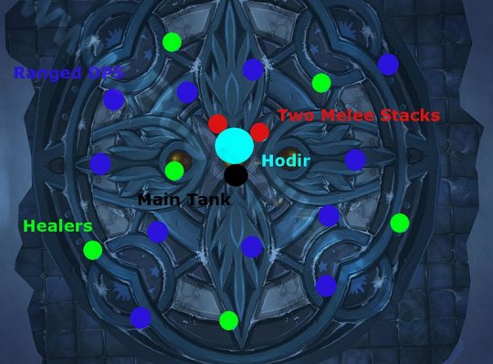 坦克将霍迪尔拉到最近的星光旁边(如果有必要的话),拥有风暴之云的玩家找个星光或者温暖之火旁边呆着,其它玩家朝着这个地方集中。