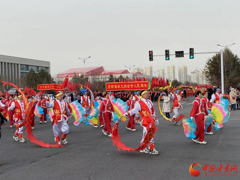 中国甘肃网2月18日讯 (西北角·中国甘肃网记者 张振国)红红火火话团圆,锣鼓喧天过大年。正月初九,凉州区“凉州儿女心向党·龙腾鼓舞贺新春”城乡社火展演活动在市区火爆上演。