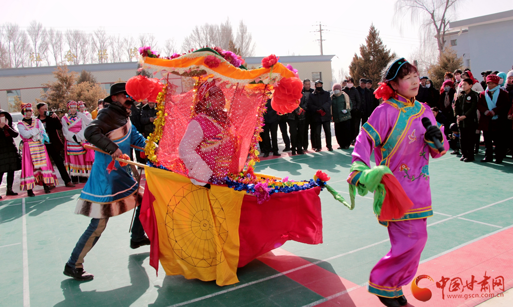 2月11日,来自金昌市永昌县的6支社火队正在为市民表演民俗节目。记者了解到,为营造欢乐祥和的节日氛围,丰富群众的节日文化生活,永昌县已连续多年举办春节社火及文艺节目集中展演活动。