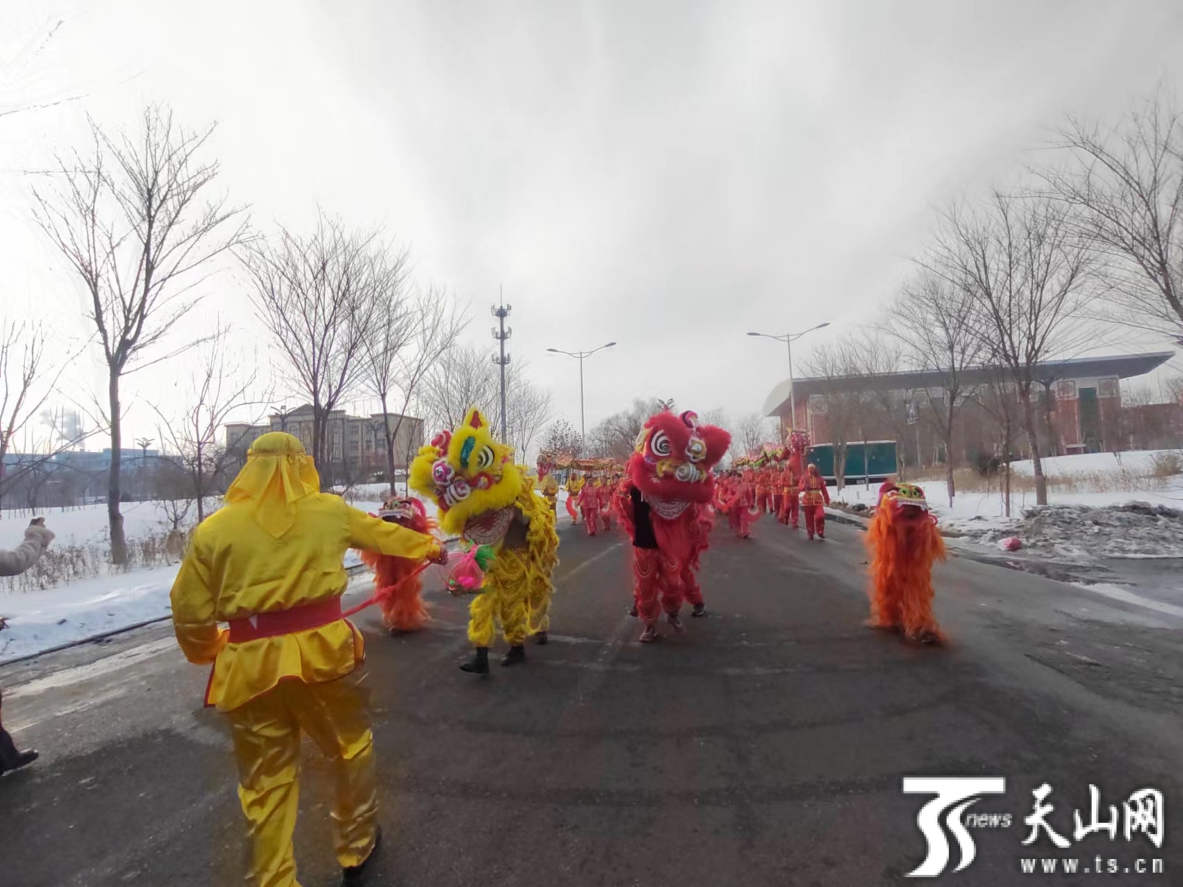 2月2日下午,霍城县水定镇朝南社区举办的“春意暖朝南 共话邻里情”元宵节联谊活动中,两只萌萌的小狮子在社火表演中格外吸睛。一巡演完,小观众们就用气球、烟花棒等当“绣球”,和小狮子一起追逐玩耍。