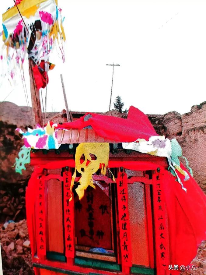 在唱社火的同时,迎香仪式也在进行,村里德高望重的老人们手持香表、打着锣鼓,从村头的马王庙行进到广场的戏台口和对面的玉皇大帝庙旧址上跪下烧香化表、鸣放鞭炮。这时台上台下的人都要跪下,执事会长朗声说道:“合会什人给老爷烧香!”,众人和道“烧这里”。如此往返三次才算完成迎香仪式。玉帝庙在文革期间遭到毁坏,再没有重修,里面供奉着玉皇大帝和洮州十八位龙神中的常遇春、李文忠、胡大海、郭英四人,应该是明代中期所修,可惜现在连一块残砖破瓦都没有留下。