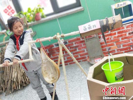 学生在转动轱辘,体验东北农村打水情景 刘栋 摄
