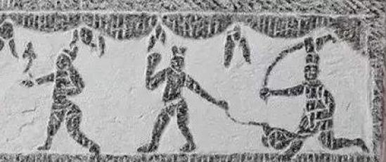 山东省济宁县张汉墓画像石“出行、献俘乐舞图”局部
