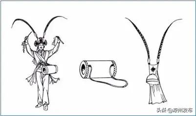 攻鼓子鼓手头插两根野雉翎,美其名曰为“ 招子”,取 “上净天宇, 下扫风尘”之意。
