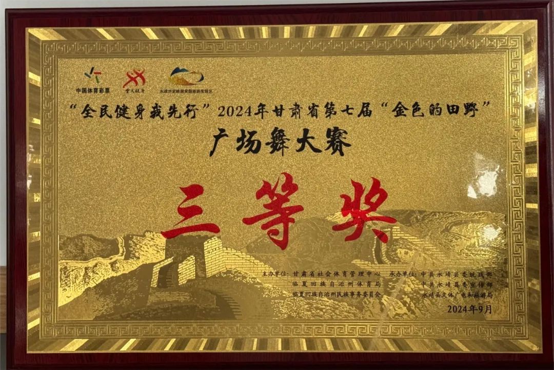 9月22日,在甘肃省社会体育管理中心主办的“全民健身我先行”2024甘肃省第七届“金色的田野”广场舞大赛中,定西市文化馆舞蹈团代表定西市文体广电和旅游局参赛,并荣获三等奖。