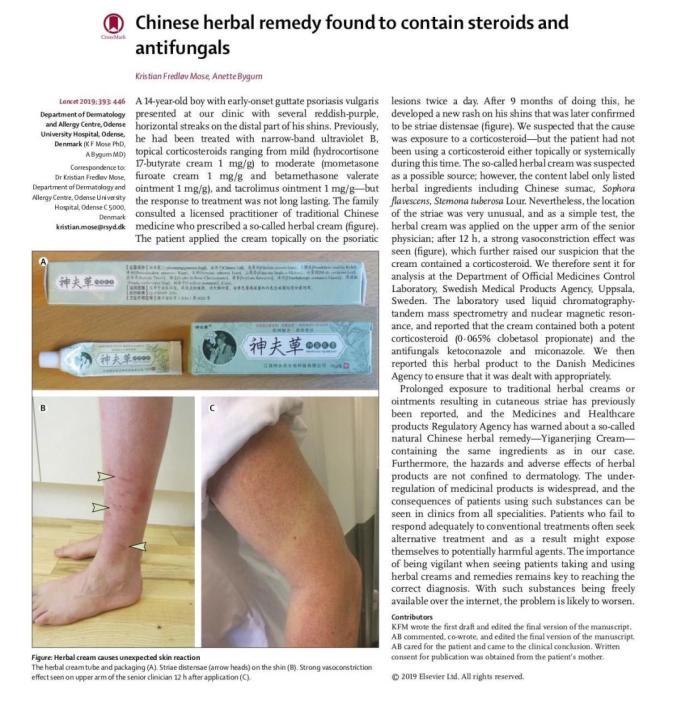 美国权威医学杂志柳叶刀就不止一次地质疑过“中草药乳膏”的疗效。