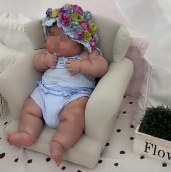 4个月大的“柚子”体重已经20斤了,和同月龄的孩子相比,她已经超重了快6斤,身上的肉像米其林轮胎一样聚成团状,脸圆乎的像漫画里的小孩,眼睛挤成一条缝,可爱,但有些过于浮肿。