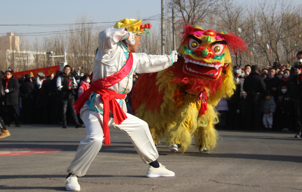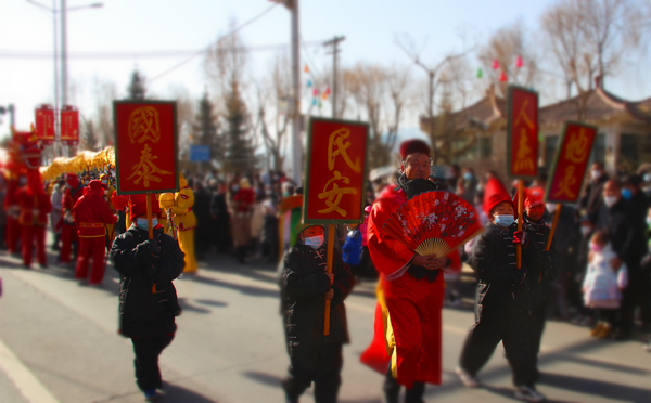 癸卯年正月十二,清晨一大早,兰州市永登县来自13个乡镇的社火队员们身着盛装,聚集在县城滨河大道上,祈盼着对新春的问候和祝福,向父老乡亲们拜年,向县委县政府表达真诚的祝福。在锣鼓喧天中,13支社火队有序进入街道观众区拉开活动帷幕,彩车开路,舞狮子、走旱船、踩高跷、扭秧歌、耍龙灯等节目逐个登场表演,营造出一场文化艺术视觉的盛宴,吸引众多的群众前来观看。