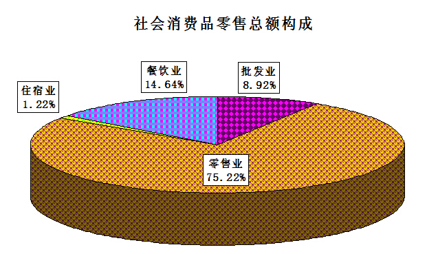 按地域分,城镇实现零售额14.87亿元,增长13.8%;农村实现零售额3.02亿元,增长5.3%。按消费形态分,批发业实现零售额1.60亿元,增长11.4%;零售业实现零售额13.46亿元,增长12.5%;住宿业实现零售额0.22亿元,增长56.4%;餐饮业实现零售额2.61亿元,增长9.1%。