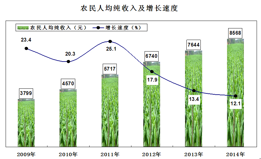 全年农民人均纯收入达到8568元,比上年净增加924元,同比增长12.1%。农民人均全年总收入为10956元,同比增加1348元,增长14.0%;其中,工资性收入4922元,增长18.2%;经营性收入5462元,增长8.8%;财产性收入39元,增长69.6%;转移性收入533元,增长32.9%。全年农民人均总支出为7282元,同比增长3.0%。其中,人均家庭经营性支出2033元,同比增长17.7%;人均生活消费支出4732元,增长6.1%。图十图十一