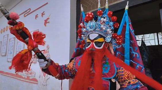 来自甘肃省灵台县的武社火,以哑剧形式呈现,用武打招数表演剧情,表演的剧目大多取自“封神”、“三国”、“水浒”等故事中的武打情节,比较著名的有《黑虎搬三霄》《出五关》《长坂坡》等。表演者身披五彩甲衣,画上不同行当的脸谱,化身关云长、黄飞虎、赵匡胤等角色,走街串巷,为人们带来精彩的民俗文化大餐。