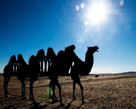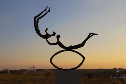 举手可摘天上星,回头却赏漠中花。在小镇的旁边,70多尊雕塑屹立在沙漠中,这个名为沙漠雕塑博物馆的基地,用全新的生态理念、文化符号和艺术风格,形象生动地传播了人沙和谐共生理念,展现了大漠与雕塑的完美融合、文化与生态的强大张力。诗情画意在大漠戈壁中挥洒驰骋,奇思妙想在天然画布上精彩演绎。民勤以博大的胸怀拥抱八方来客,迎接全国、全球的艺术大师,到“沙海绿洲•绿洲碧海”之中寻找灵感、展示技艺、放飞梦想。