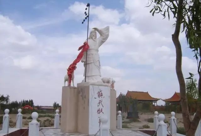 汉武帝天汉元年(公元前100年),苏武奉皇命以中郎将持节出使护送匈奴使者归胡,不料被匈奴单于无理扣留,并派判徒卫律劝降,苏武大义凛然,义正词严痛斥叛徒的卑劣行径。苏武被置于窑中绝食,迫使屈服。苏武“啮雪与毡毛咽之”《镇番县志》,一连数日不死,始终刚正不屈。单于无奈,将苏武放逐北海(白亭海)令其牧羝。公元前86年,昭帝继位,要求匈奴释放苏武,历经周折于始元六年(公元前81年)苏武始归汉庭。苏武留胡节不辱,遂以“一代忠良”名扬天下,民勤之百姓仰慕至极。为纪念这位“忠肝百炼”的名臣之英德,明成祖永乐七年,兴建苏武庙,立“苏武山铭”。崇祯年间,又于庙前立汉中郎将苏武牧羊的石碑(现保存于县博物馆)。在民间关于苏武牧羊的传说世代相传,日渐丰富多彩。2006年,中科院院士任继周等专家著述《苏武牧羊北海故地考》,充分论证了“民勤应为苏武北海牧羊故地”。北海是民勤境内的北部湖区,唐时名白亭海,人迹罕至,牧野千里。