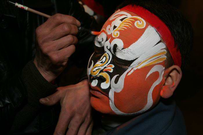 宝鸡社火脸谱至今还残存着周文化“大傩”涂脸的遗痕,从殷商青铜器上的饕餮、夔龙、夔凤等图案看,社火脸谱也不乏带有商代的遗风。如今,经历了世世代代不断演绎、传承的社火脸谱已日臻完美,从绘画、设色、章法、布局形成了一整套相对固定的程式,自成体系。