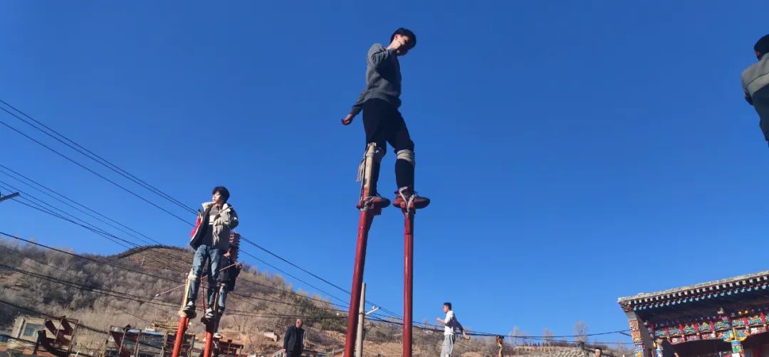 一年一度的社火表演承载着百姓对春节的美好愿景。随着高跷的鼓点响起,高跷表演者踩着鼓点,开始了今天的排练。挥舞的双手,摇曳的身姿,轻盈的步伐,这是他们历经一次次伤筋动骨的苦练后练就的“真功夫”。