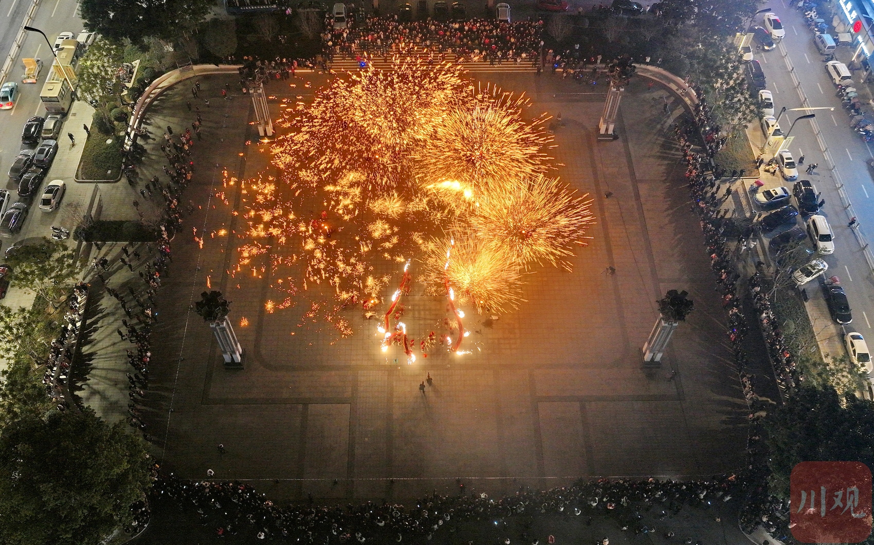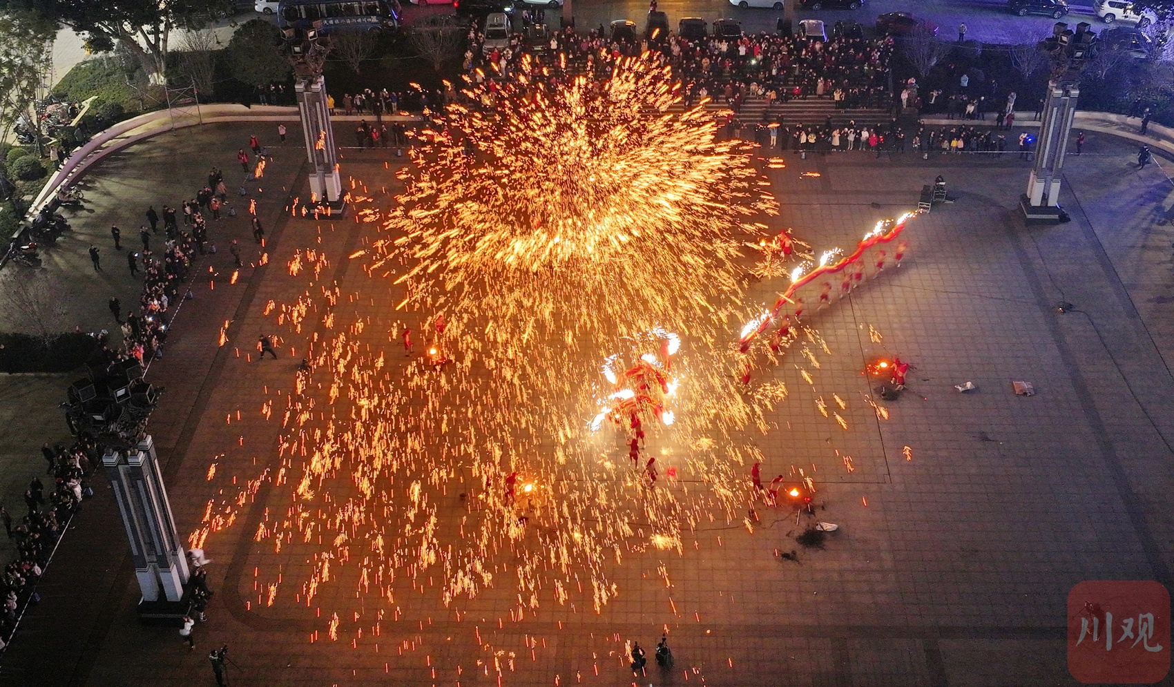 1月31日晚,在蓬安县相如广场,民间艺人表演“钢花火龙”迎春节。连日来,“我们的节日·春节”蓬安县2024迎新春文化惠民活动周在四川省南充市蓬安县启幕,活动依托本土文化资源和文艺人才,让大家沉浸式体验非遗文化和民俗活动,喜迎新春佳节。