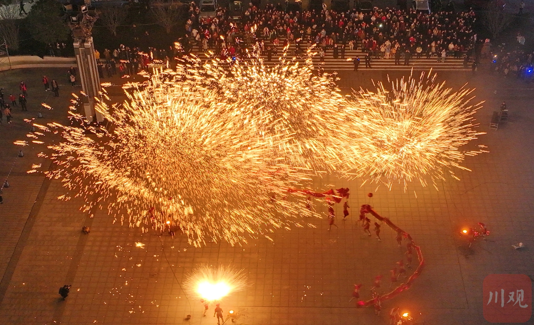 1月31日晚,一场“钢花火龙”表演在四川省南充市蓬安县相如广场精彩上演,火龙在飞溅的钢花中飞舞,令人叫绝,充满着浓浓的龙年春节气氛。