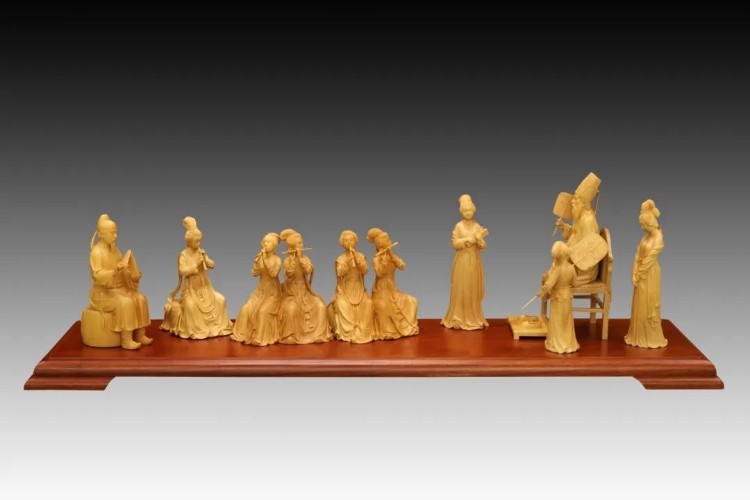 黄杨木雕是浙江地区的传统民间雕刻艺术之一,以黄杨木做雕刻材料,利用黄杨木的木质光洁、纹理细腻、色彩庄重的自然形态取材。