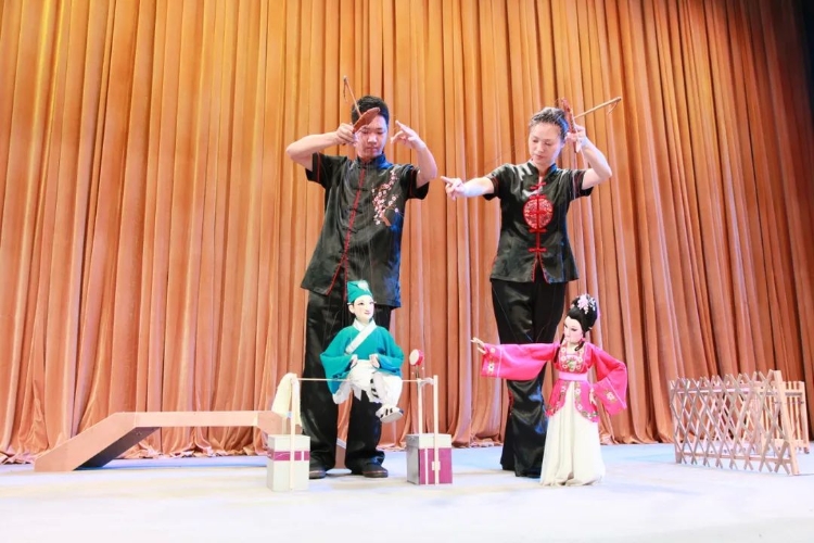 其独特的表演形式在全国同类艺术中已极为罕见,具有较高的保护价值,一米见方、雕梁画栋的小舞台装搭在一只戏箱背上,艺人坐在镂空小舞台屏风后面操作,周围蒙布,只留一个舞台口作布袋戏表演区。