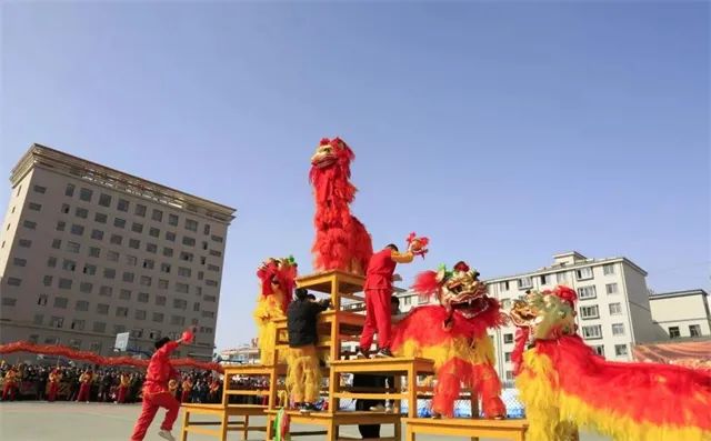 山丹舞狮有别于其他地方,主要以桌凳摞垒舞狮为主,舞狮在桌凳上表演惊险刺激,展示了舞狮者的高超技艺和不畏艰险的精神。耍龙和舞狮不仅寓意着风调雨顺、五谷丰登,更是吉祥瑞和的象征,为春节增添了浓厚的喜庆氛围。