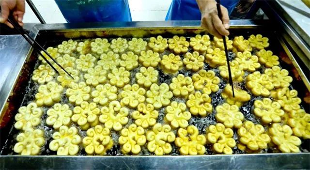 家乡美食的味道,是一股难以忘怀的香气,是一种独特的味道,是一抹浓浓的乡愁。炸糖花子是山丹县春节前做馍馍的传统习俗,至今已有百年历史。油炸糖花子用醒发后的面饼切成宽约六厘米,长约九厘米的长方形,中间再切通三道裂缝,用手翻成图案花状,下油锅缓煎慢炸。炸好的糖花黄中透红,酥脆香甜,成为春节待客的头等美食。
