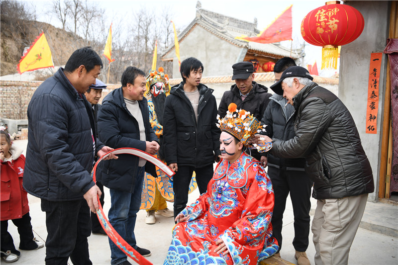 春节期间,天水市秦安县五营镇花双村老虎穴的社火队在村民们的簇拥下敲锣打鼓,走户串巷,群众在传统民俗活动中感受着浓浓年味。新甘肃·甘肃经济日报记者 瞿娟 摄