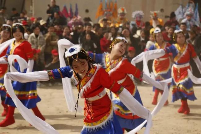 社火表演现场,队员们身着盛装,精神抖擞,神采飞扬,踏着欢快的鼓点,笑意写在脸上,他们带着新春的问候和祝福,在阵阵锣鼓声中隆重登场,激昂热烈的舞狮、富有地方特色的民俗舞蹈、掌灯子、小跷子、踩高跷、融合了小品元素的花龙船、彩色的祥龙、藏族舞蹈等传统社火节目轮番上演,处处洋溢着热闹喜庆的节日氛围,引得大家拍手称赞,让村民们在家门口尽享了一场年味十足的民俗文化“盛宴”。