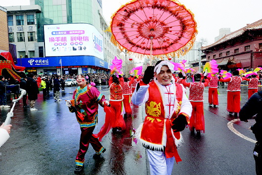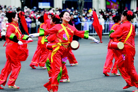 喧天的锣鼓打起来,欢快的秧歌扭起来,彩龙金狮舞出喜庆欢闹。农历正月十二、十三上午,秦州、麦积两区的社火汇演相继登场,来自各乡镇、街道办事处和企业以及民间的社火队热热闹闹走上街头,开展行进式表演和集中表演。震天的锣鼓、腾飞的巨龙、威武的雄狮、喜庆的高抬……参演人员个个精神抖擞、神采飞扬。舞龙队的“长龙”时而腾空跃起,时而蜿蜒低潜,时而翻滚盘旋;舞狮队的狮子或威猛雄壮、或憨态可掬,动作矫健、姿态百变;身着艳丽秧歌服的表演队员,尽情地挥舞着手中的彩带,踩着鼓点变换舞姿,把秧歌的热烈和欢腾展现得淋漓尽致。一时间,锣鼓声、掌声、喝彩声、欢笑声汇成一片。