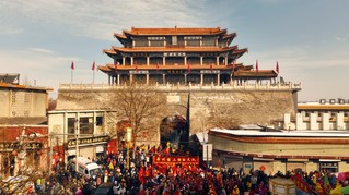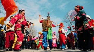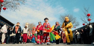 2月23日,河北省张家口市蔚县蔚州古城热闹非凡,民间社火表演正在这里进行。牌楼南北大街的青石板路上人头攒动,表演者们同观众互动,时而传来阵阵欢笑声,充满浓浓年味。