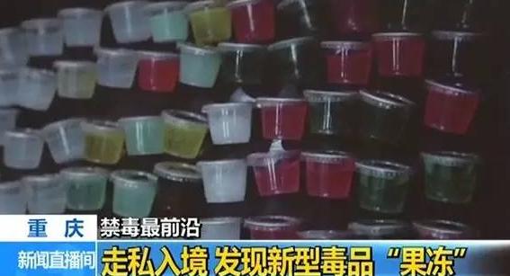 毒品“果冻”,跟我们常见的食用果冻大小还有形状都基本相同,且其外包装上有一些小三角的标记。据犯罪嫌疑人的供述,不同的颜色和不同的标记,是用来区分口味和成分的,有的含有大麻、有的含有冰毒。