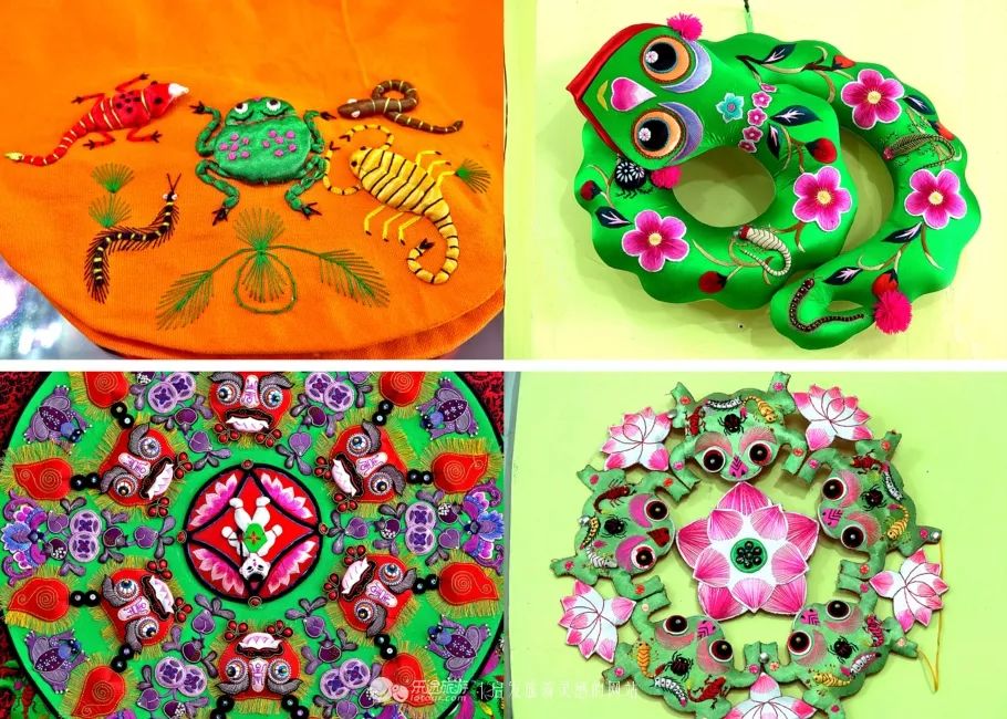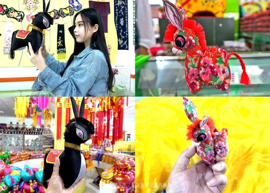 驴,是很难登上大雅之堂的,著名画家刘文西笔下的驴大都在革命题材中出现,而能与黄胄笔下的驴一同登上大雅之堂的也就是庆阳的香包。在这里她们把驴做成了与虎、龙等图腾相美媲美的图腾,这完全出自驴给黄土高原的人们带来的帮助,是耕作、载物、出行的最佳伙伴,所以黄土地上朴实的人们感恩驴的付出,把它作为一种美好生活的象征。在刘兰芳的工作坊,她把驴的设计融入了新的卡通特征,赋予了时代的元素,深受人们的喜爱。