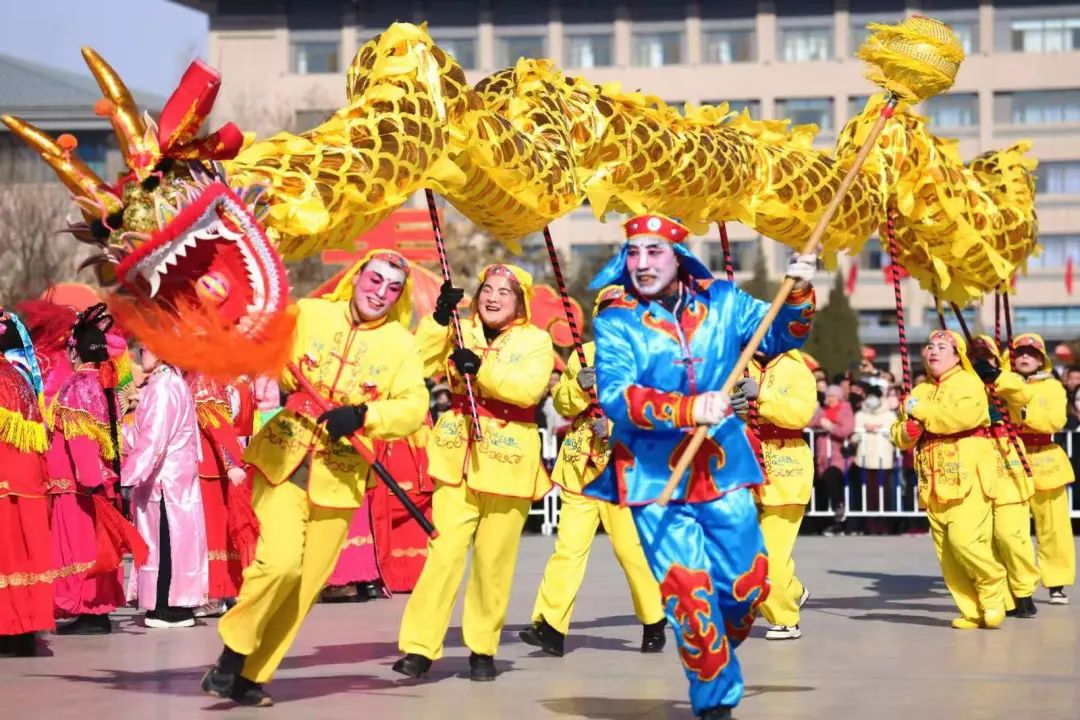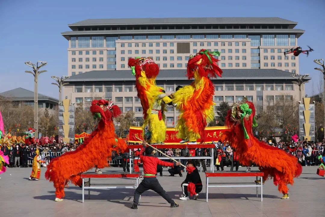 扭秧歌、打腰鼓、跳锅庄、舞长龙、耍狮子……演出人员身着盛装,载歌载舞,震天的锣鼓声和热情洋溢的社火表演为广大群众奉献了一场年味十足的民俗文化盛宴。