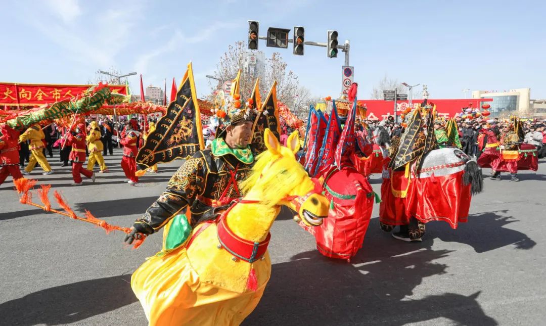 铿锵的锣鼓敲起来,鲜艳的彩扇飞起来,绚丽的彩车开起来,热情的秧歌扭起来,欢腾的巨龙舞起来……欢声笑语中抹去了一年的忙碌,载歌载舞中满是对家乡的美好祝愿和对新时代的热情赞美,千百姿、万种态无不饱含着大家对新一年美好生活的憧憬与向往。