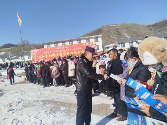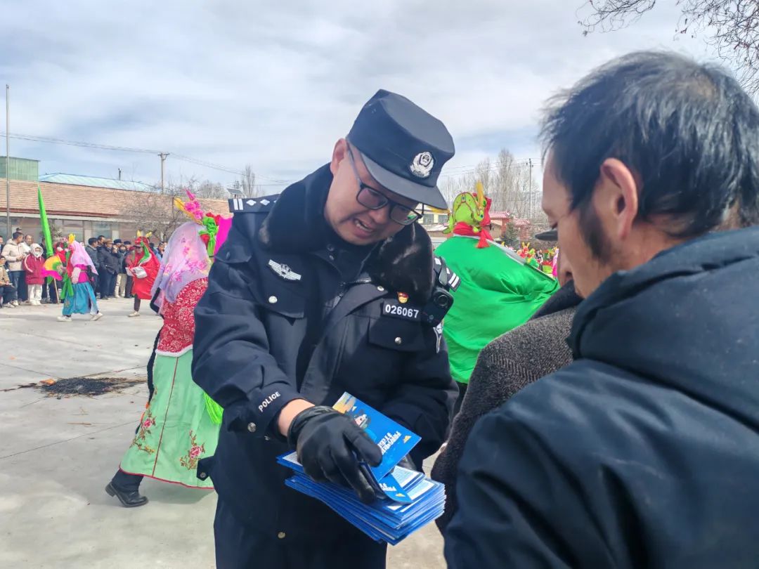 “外出走亲访友或看社火时一定要锁好门、关好窗,做好防盗工作。”为有效预防春节期间因看“社火”或走亲访友家里无人看守或村庄内人员较少易引发盗窃案件的实际,东和派出所民辅警借力社火现场,向在场的广大群众积极宣传家庭防盗、车辆防盗、财物防盗等法律知识,并提醒广大群众出门与亲朋好友聚会或者看社火时一定要锁好门窗,做好邻里守望,努力营造宣传一个带动一片的浓厚氛围。