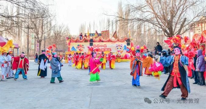2月12日上午8时38分,清晨的第一缕阳光撒向大地,月牙泉小镇“民俗社火闹元宵”活动拉开序幕。(王斌银 周玉玲 盛玉卿)