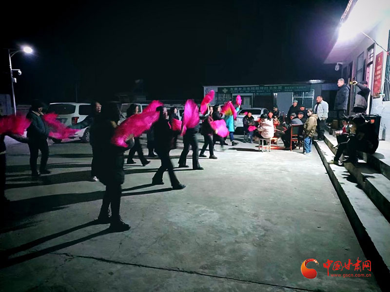 在权坪村文化广场,伴随着热闹的锣鼓声,马淑琴带着十几名妇女排练扇子舞。天气虽然寒冷,但队员们踏着喜庆的鼓点、和着欢快的节拍,尽情的笑着跳着扭着,精彩的表演吸引了很多路人驻足观看。大家都乐在其中,一招一式无不饱含了他们对美好生活的憧憬和向往,充分展现了全乡群众的良好精神面貌。