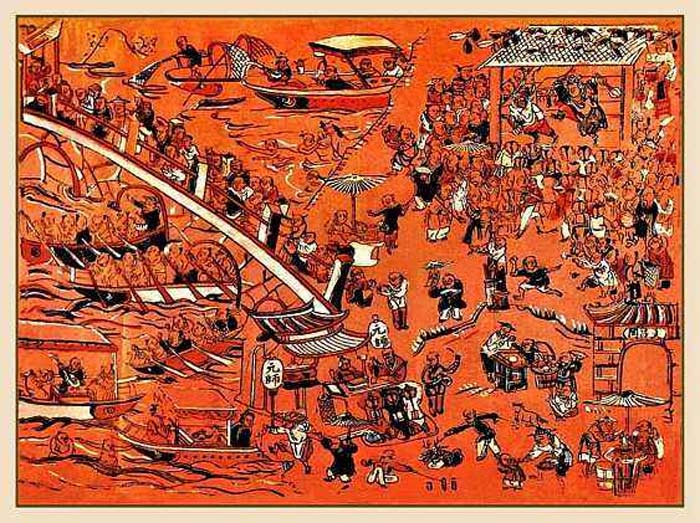 年画在北宋时期发展迅猛,当时商业繁荣、手工业日渐成熟,雕版印刷术也得到了巨大发展,丰富的民间庆贺新年活动等为年画的发展提供了良好的社会条件。汴京(今河南开封)和临安(今浙江杭州)的岁末市场上开始印卖木刻年画,题材上也大为扩展,如风俗、戏曲、美女、娃娃等年画题材开始出现。南宋时期的木版年画更加丰富。明中叶以后,随着商业手工业的进一步发展,雕版印刷中的彩色套印技术的成熟,木版年画得到了飞速的发展,才出现了诸如天津杨柳青、山东杨家埠、苏州桃花坞等著名的年画产地。新中国成立以后,新年画继承了旧年画的许多优良传统,摒弃了旧年画中的一些迷信、落后的内容。许多专业画家加入了年画的创作队伍,他们打破了旧年画的一些固定程式,大胆借鉴其他画种的表现手法,使得年画的面貌焕然一新。