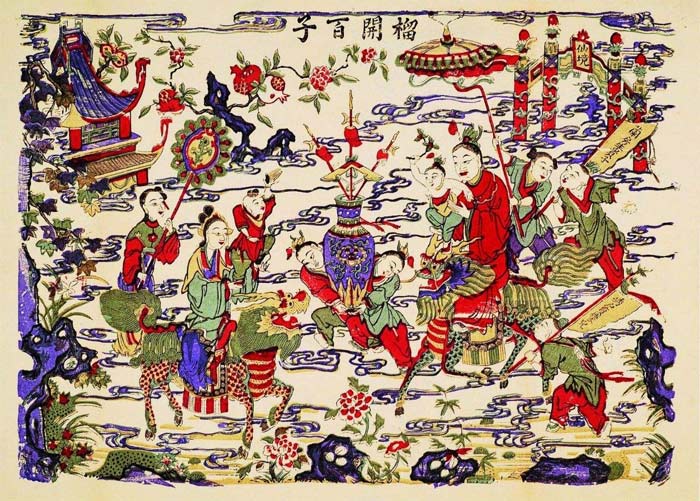 而从产地上来分类的话,年画有四大产地,河南开封的朱仙镇、山东潍坊的杨家埠、江苏桃花坞、天津杨柳青在历史上久负盛名,被誉为中国“年画四大家”。其中朱仙镇木版年画历史最为悠久,可谓中国木版年画的鼻祖和发祥地。