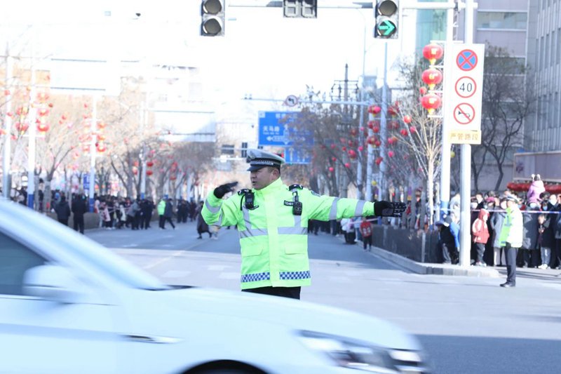 社火闹春!绚丽的民俗画卷中,身身警蓝绘出古城祥和的“平安底色”