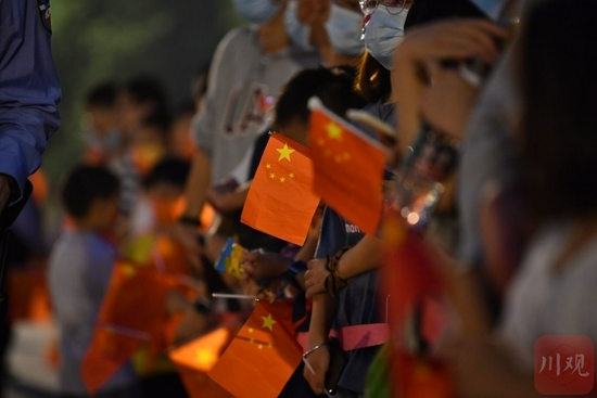 此时,庄严的天府广场上,鲜艳的五星红旗高高飘扬,现场爆发出热烈的掌声和巨大的欢呼声。“我爱你中国”“祝伟大祖国繁荣昌盛”声此起彼伏,在一些市民的带动下,大家还唱起了《我和我的祖国》,不停挥舞着手中的国旗,表达对伟大祖国的诚挚热爱与美好祝福。
