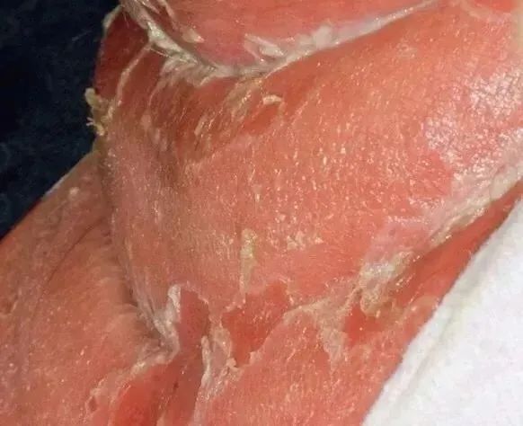 病情发展过程中,皮肤上的红斑会逐渐变成水疱,之后大面积脱落,就像烫伤了一样。