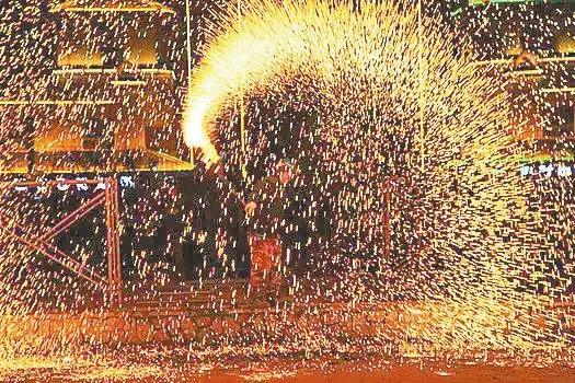 在庆阳地区,元宵节当天人们要再次祭灶神、财神、土地等诸神,并筹办丰富多彩的社火灯会。夜晚,人们纷纷相约逛灯会,赏花灯。其中,“打铁花”“蒸面灯”是当地独具特色的活动内容。