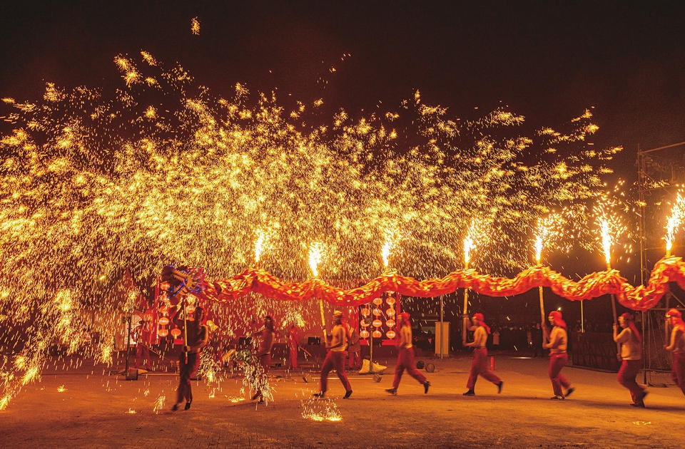左权县舞龙和打铁花表演。张文军摄
