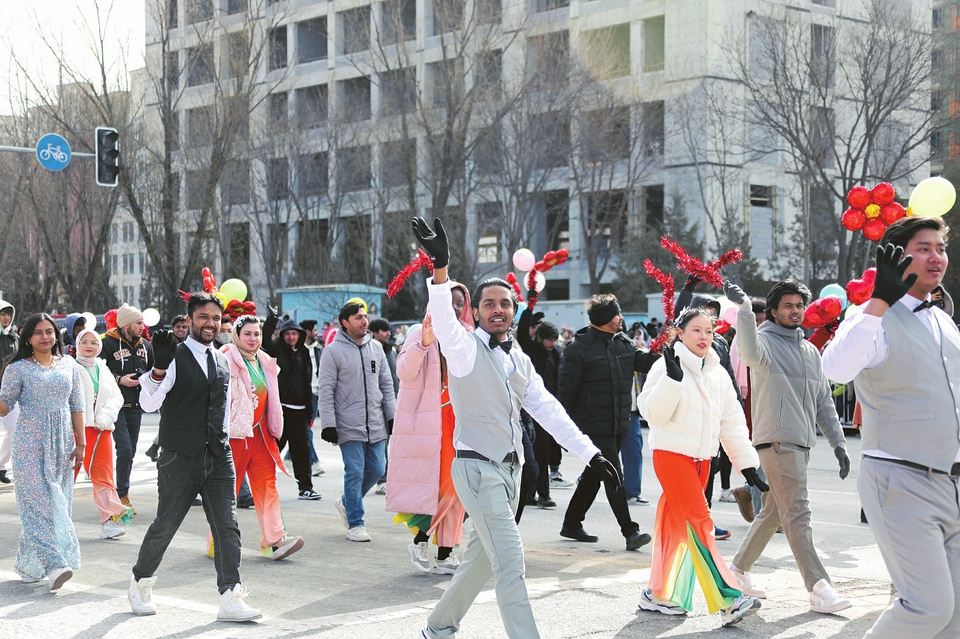 留学生参加晋中市社火会演。杨洋摄