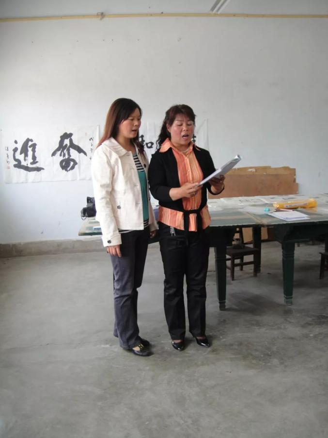 ▲市级民歌传承人崔雪和民间艺人王烈琴练习民歌演唱 李玉屏摄