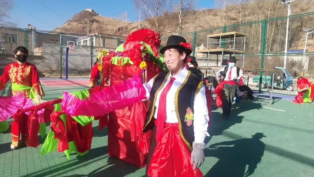 广场上,社火队员们排练得卖力,67岁的代全梅和村里的老人们搬着小板凳坐在一旁看得开心。她告诉记者:“村里四年没演社火了,今年把社火耍起来了,我们老了跳不动社火了,我们就来看看,社火耍的好,我们的日子也是越过越好。”