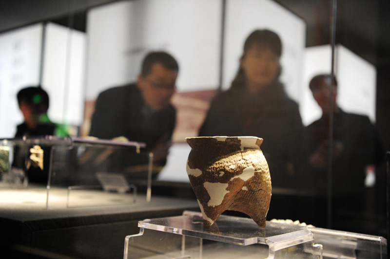 3月7日,游客在梁带村芮国遗址博物馆内参观。