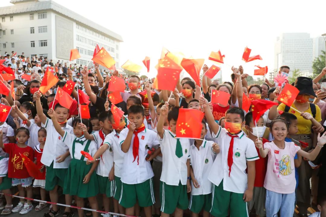 上午8时,升旗仪式正式开始,伴随着嘹亮的口号声,护旗手迈着矫健的步伐,庄严走向旗台。当雄壮嘹亮的《义勇军进行曲》响起,升旗手振臂一挥,鲜艳的五星红旗在秋风中徐徐升起。在高亢、激昂、嘹亮的国歌声中,现场党员干部群众行注目礼,摇动着手中的小国旗,满怀激情讴歌新中国,向祖国致以美好祝福。