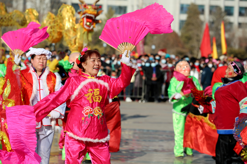 人民网银川2月3日电 (高嘉蔚)2月3日,正值农历正月十三,伴着铿锵的锣鼓声,“欢天喜地过大年·红红火火闹元宵”社火大赛决赛暨巡演活动在宁夏银川市举行。来自各县市区的18支社火队伍带着精心编排的秧歌、舞龙、舞狮等传统社火项目轮番登场,节日氛围“拉满”。