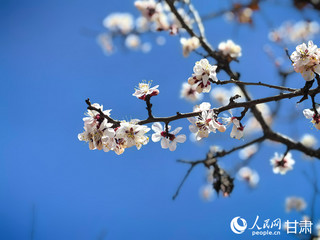 4月7日,在甘肃省东乡县唐汪镇杏花村,千树万树杏花迎春绽放,朵朵杏花串起春日的生机与活力。